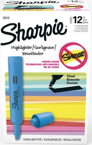 12 PIEZAS RESALTADOR SHARPIE 25010B COLOR AZUL
