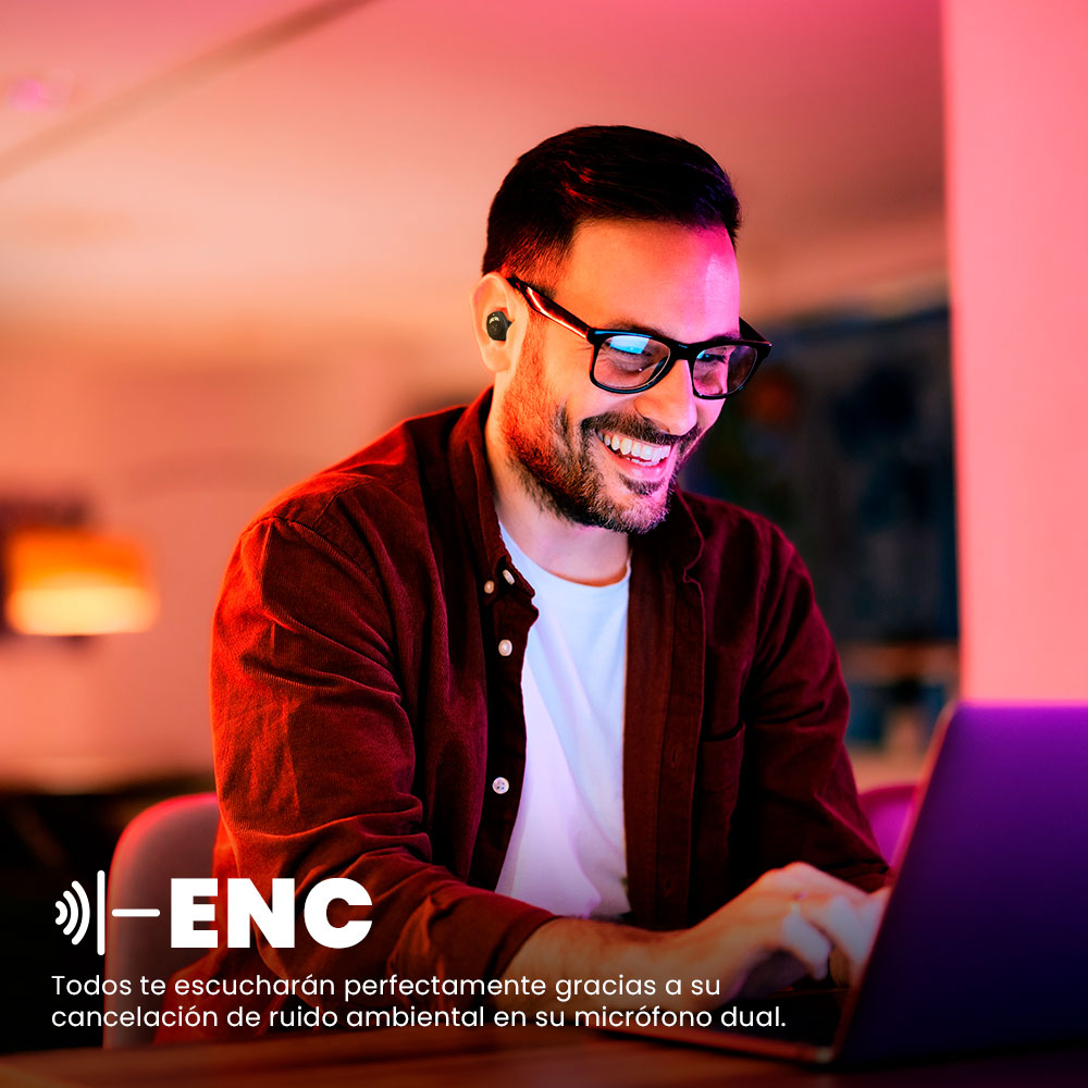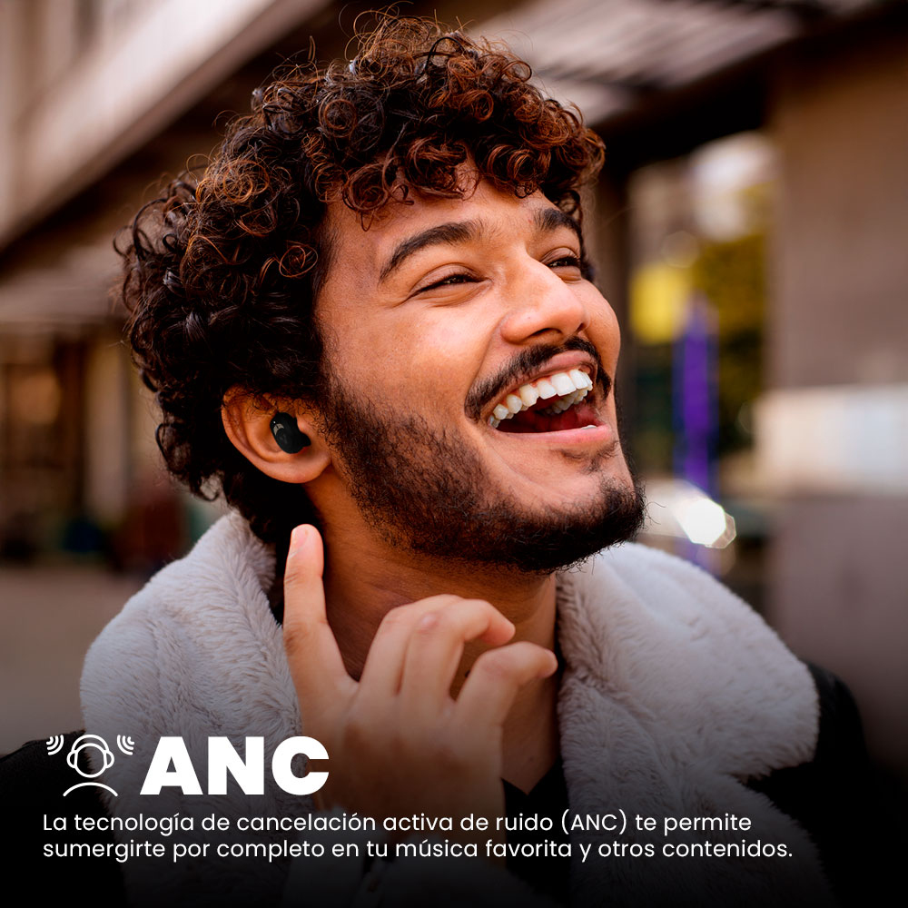 Audifonos earbud Vorago Premium ESB-600-ANC. Cancelación de ruido / Noise Cancelling TWS IPX5 21Hrs control táctil 590mAh