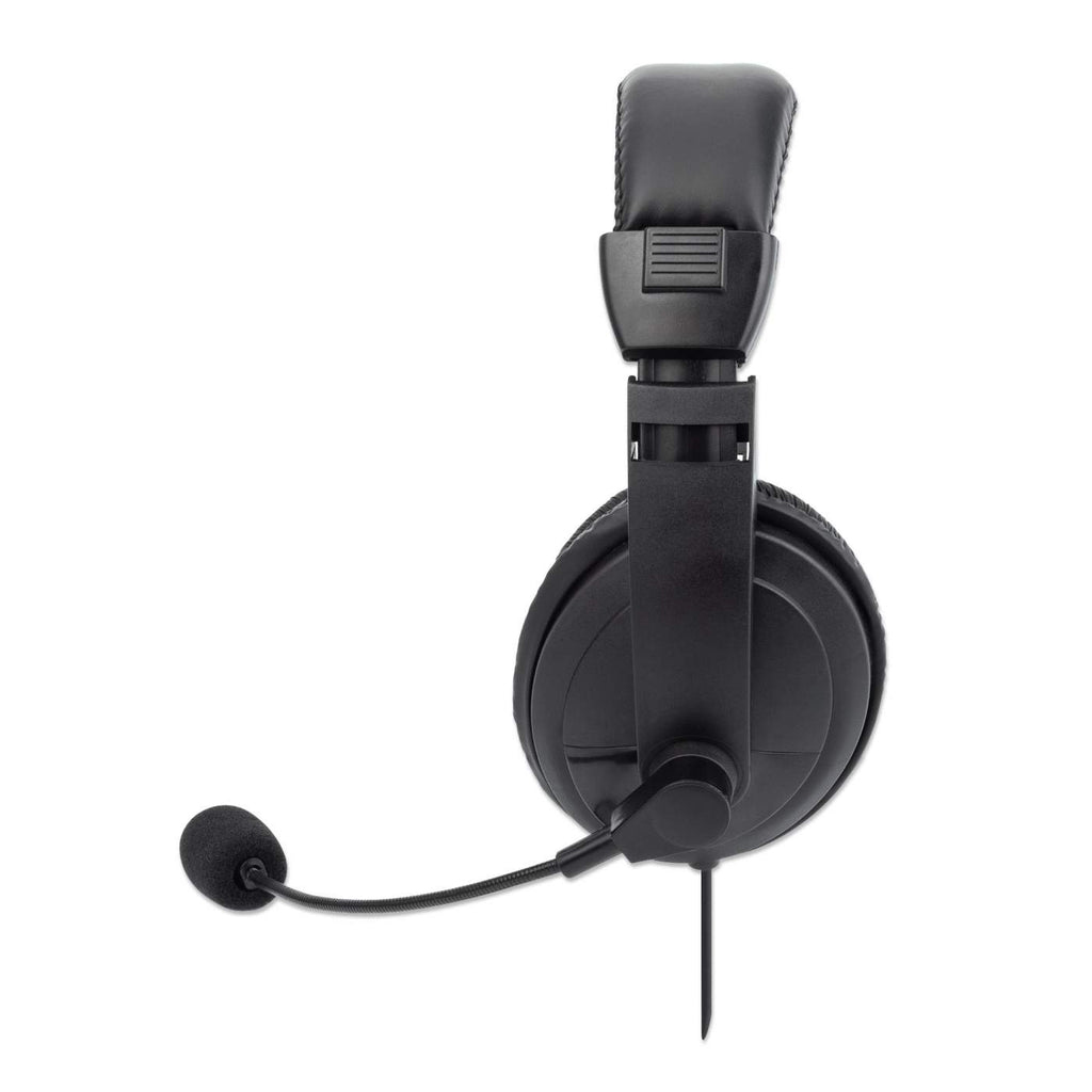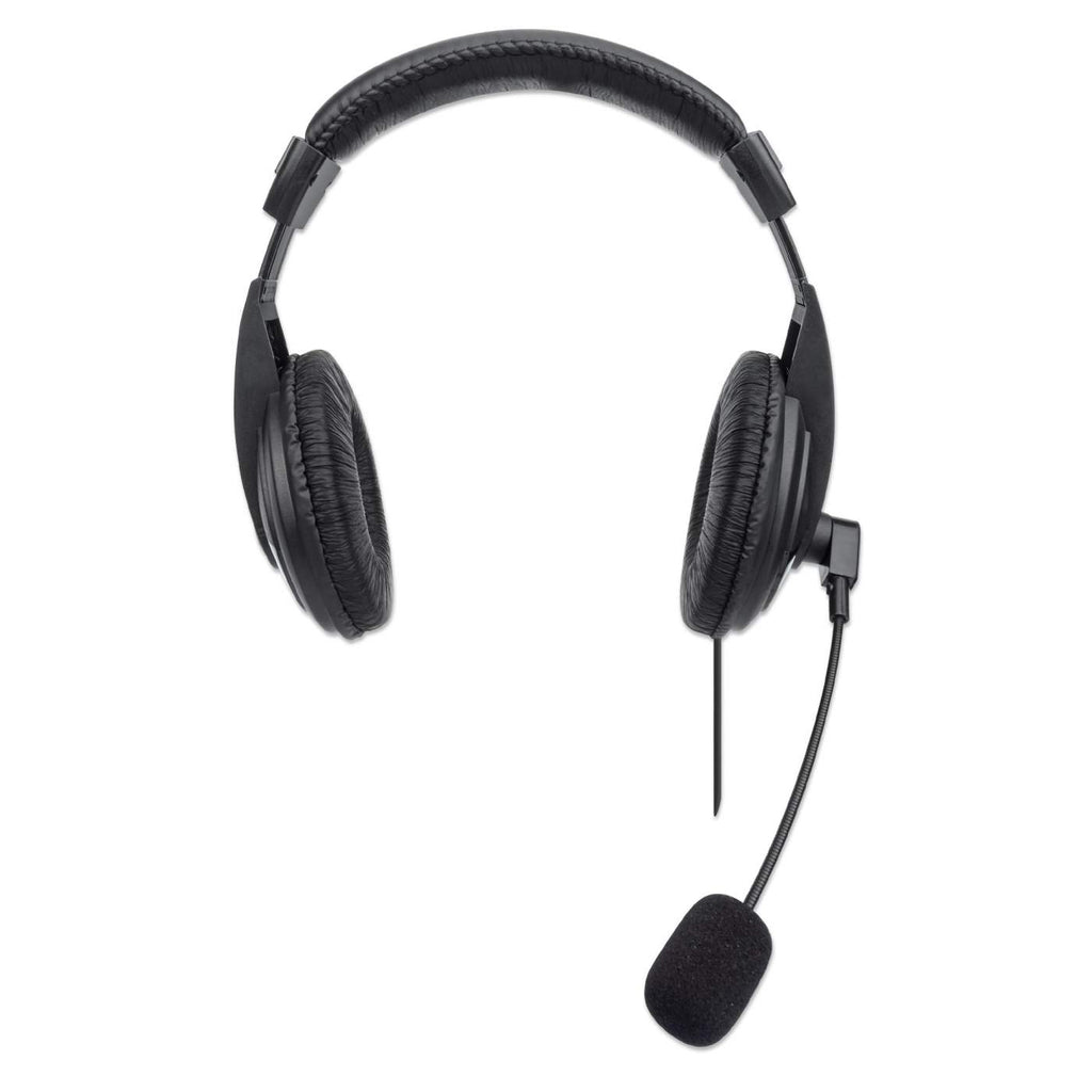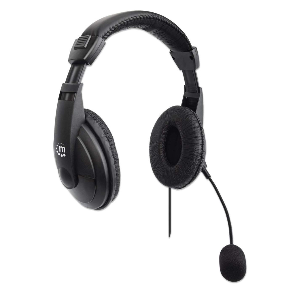 DIADEMA AUDIFONO ESTEREO C/MICROFONO AJUSTABLE MANHATTAN 179843 ALAMBRICO/USB/COLOR NEGRO