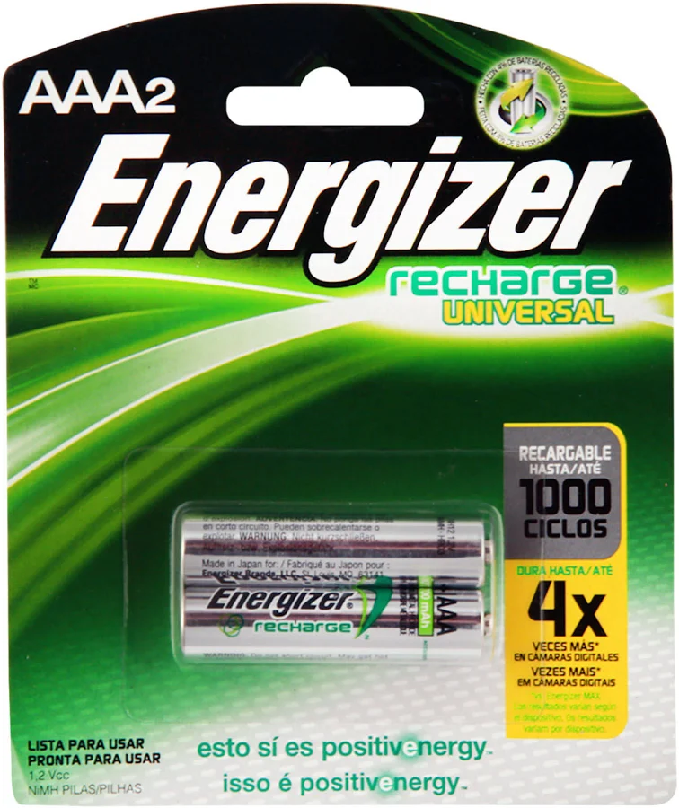 Las pilas Energizer Recharge AAA brindan energía recargable de alto rendimiento y duran hasta 4 veces más en cámaras digitales, comparadas con las pilas alcalinas (los resultados pueden variar). Mantienen la carga hasta 1 año y pueden ser recargadas cientos de veces. ¡Están listas para usar! Elige el cargador que mejor se adapte a tus necesidades.