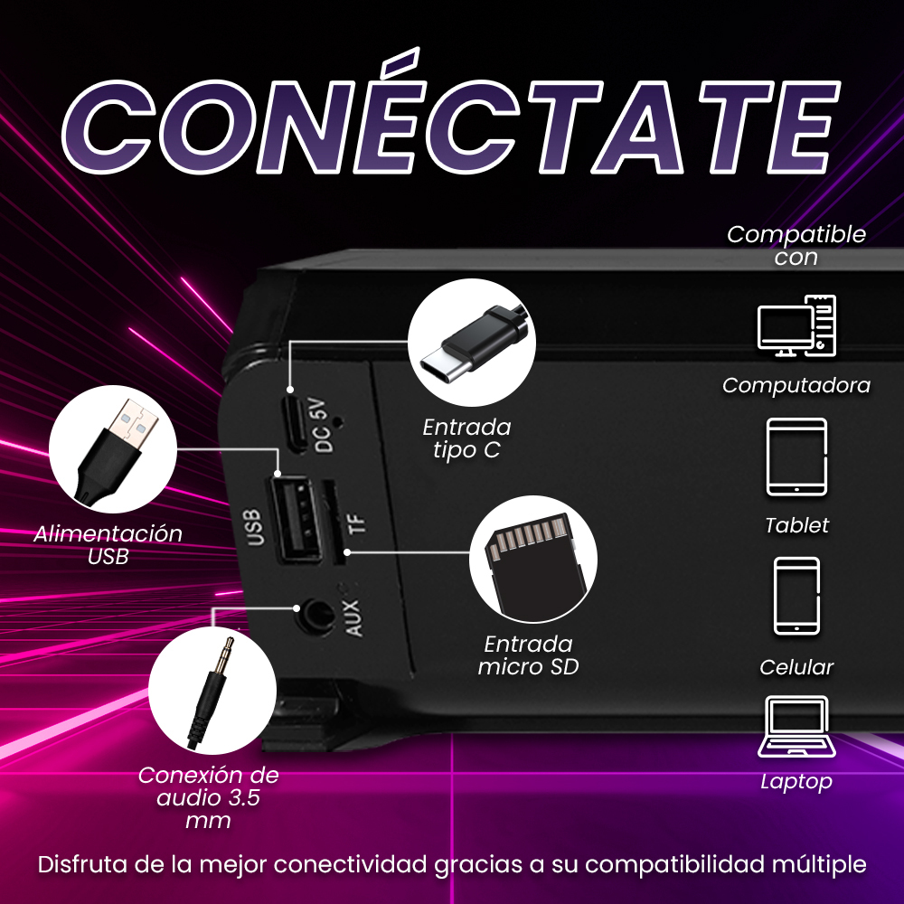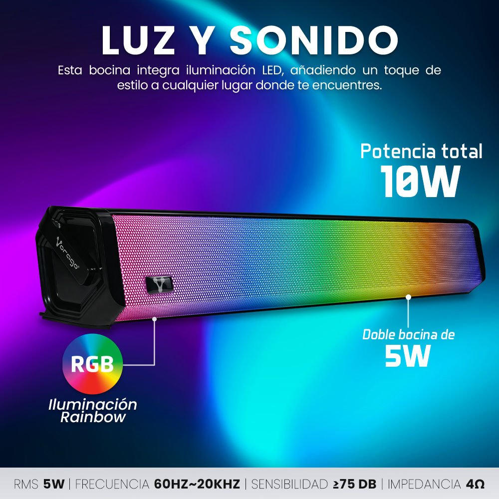 BOCINA INALAMBRICA VORAGO BSP-320/ BLUETOOTH/NEGRO/5 W/3.5 MM/USB/MICRO SD/ILUMINACION RGB/3.7V 1200MAH