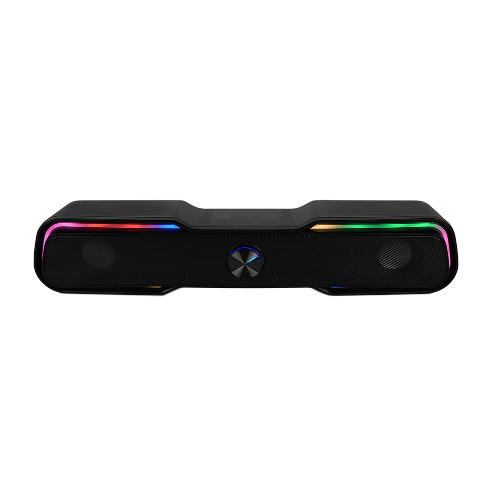 Bocinas VORAGO Start The Game BSP-350 Bluetooth 5.0/3.5mm/USB – 10W (2x5W), Iluminación RGB, Panel táctil, Color Negro.