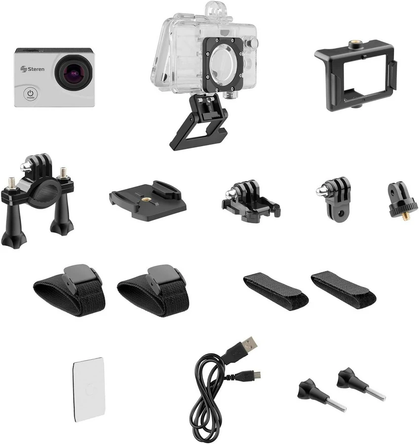 La Cámara Deportiva Steren CAM-500 es un dispositivo diseñado para capturar momentos en alta definición. Con una resolución total de 5 megapíxeles, permite tomar fotografías y grabar videos en formatos 720p y 1080p, alcanzando una máxima resolución de video de 1920 x 1080 píxeles. Su sensor tipo CMOS garantiza una calidad de imagen adecuada para diversas actividades al aire libre. Este modelo cuenta con una funda a prueba de agua, lo que lo hace ideal para deportes acuáticos y aventuras en condiciones climáticas adversas. La cámara incluye un adaptador AC y cables USB, facilitando la carga y conexión. La capacidad de la batería es de 900 mAh, proporcionando un tiempo de uso prolongado. La Steren CAM-500 es compatible con tarjetas de memoria MicroSD (TransFlash) de hasta 32 GB, permitiendo almacenar una gran cantidad de fotos y videos. Además, cuenta con un conector USB Micro-USB y un puerto Micro HDMI, lo que facilita la transferencia de archivos y la conexión a otros dispositivos. El dispositivo no posee pantalla abatible, pero sí incluye una pantalla incorporada que permite visualizar las imágenes y videos capturados. La cámara soporta un montaje básico y cuenta con un soporte de correa, lo que facilita su transporte y uso en diversas situaciones. La velocidad máxima de cuadro es de 60 pps, lo que asegura una grabación fluida. Aunque no cuenta con Bluetooth, NFC ni GPS, su conectividad Wi-Fi permite compartir contenido de manera sencilla. El voltaje de la pila es de 3,7 V y la corriente de salida es de 0,5 A, asegurando un rendimiento eficiente. El color del producto es blanco, lo que le otorga un aspecto moderno y atractivo. En resumen, la Cámara Deportiva Steren CAM-500 combina funcionalidad y diseño, siendo una opción versátil para quienes buscan capturar sus aventuras con calidad.