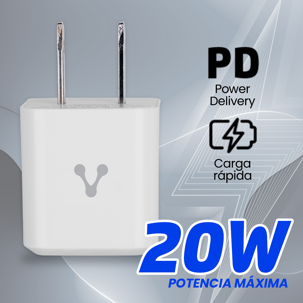 CARGADOR DE PARED VORAGO AU-250-V2 USB TIPO-C/20W/5V/CARGA RAPIDA/BLANCO