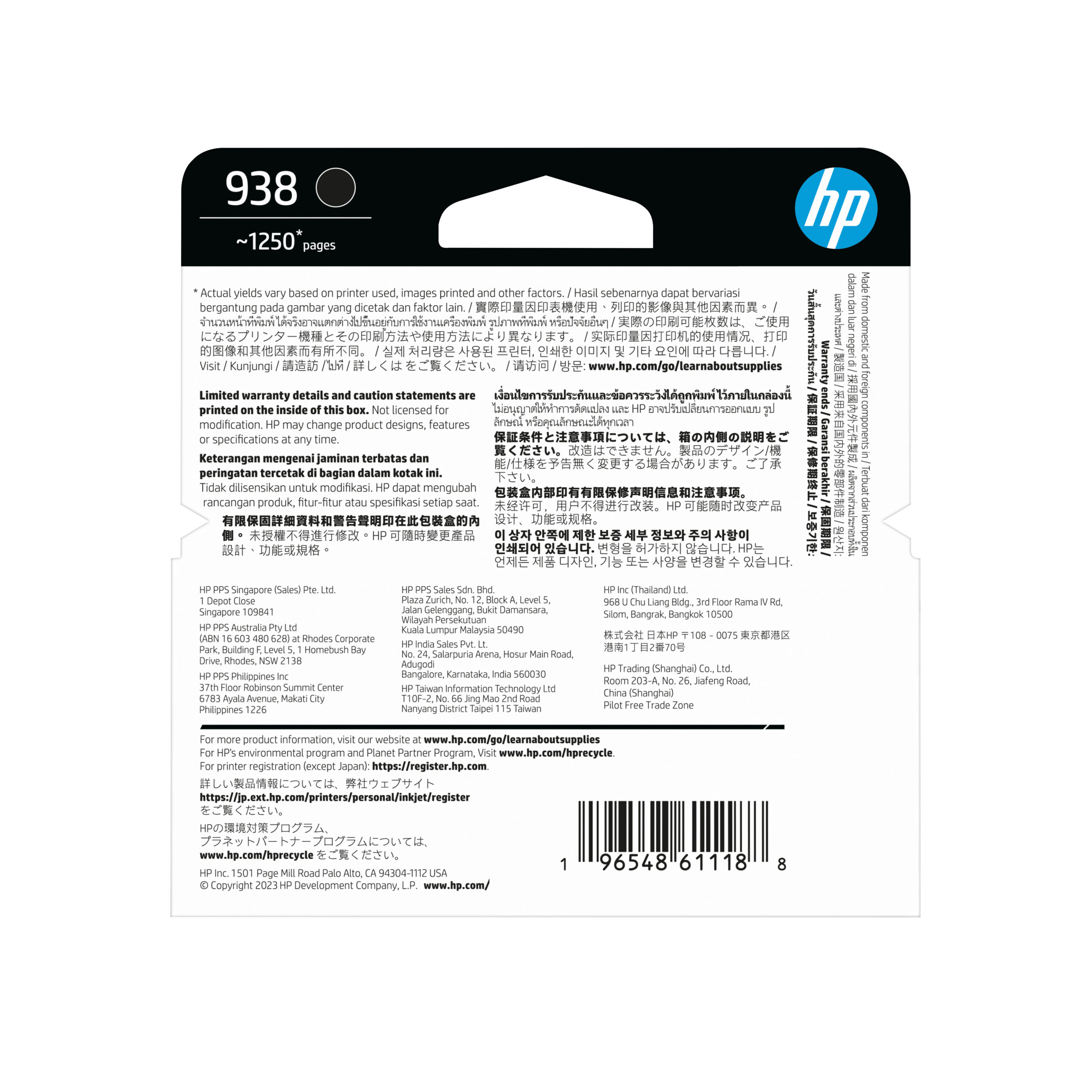 CARTUCHO DE TINTA HP 4S6X8PL 938 NEGRO, 1250 PAGINAS