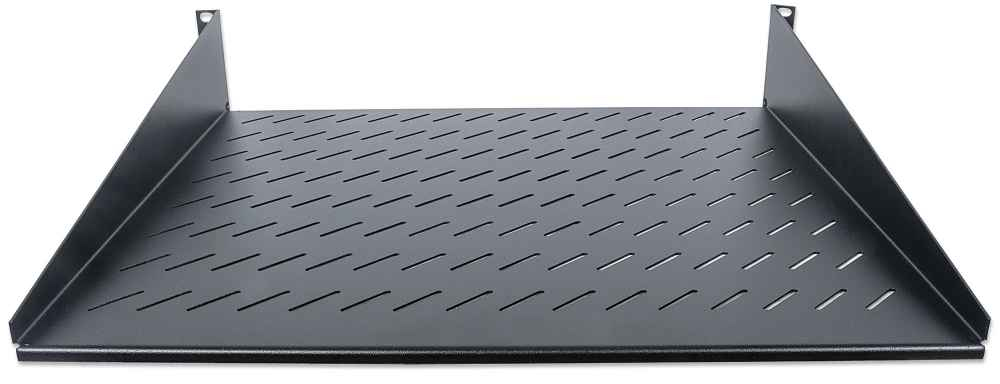 712514 Charola fija 19 – 2U, Ventilada, Negro. Para montaje en pared y gabinetes con un mínimo de 520 mm de profundidad