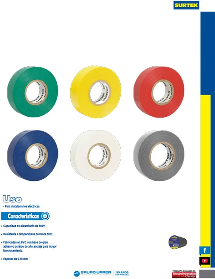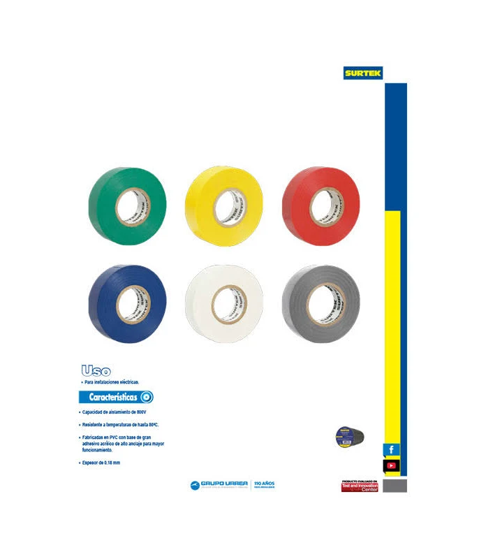 CINTA PARA AISLAR COLOR VERDE DE 19 MM X 9 METROS SURTEK SYS138005 FABRICADA EN PVC/ADHESIVO ACRILICO