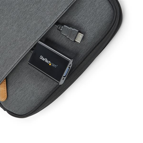 El cable adaptador HDMI® a VGA HD2VGAA2 le permite conectar un dispositivo de salida HDMI, como una salida de vídeo de un ordenador portátil o un extensor multimedia digital a un dispositivo de visualización VGA (monitor, proyector) convirtiendo la señal de vídeo HDMI del dispositivo de salida en una salida VGA y audio analógico de 2 canales por separado. El adaptador HDMI a VGA está pensado para mostrar contenidos generados por el usuario, como presentaciones, documentos y hojas de trabajo, en un proyector o monitor VGA. El adaptador también puede ampliar el escritorio de su ordenador para duplicar su espacio de trabajo y aumentar la productividad.
