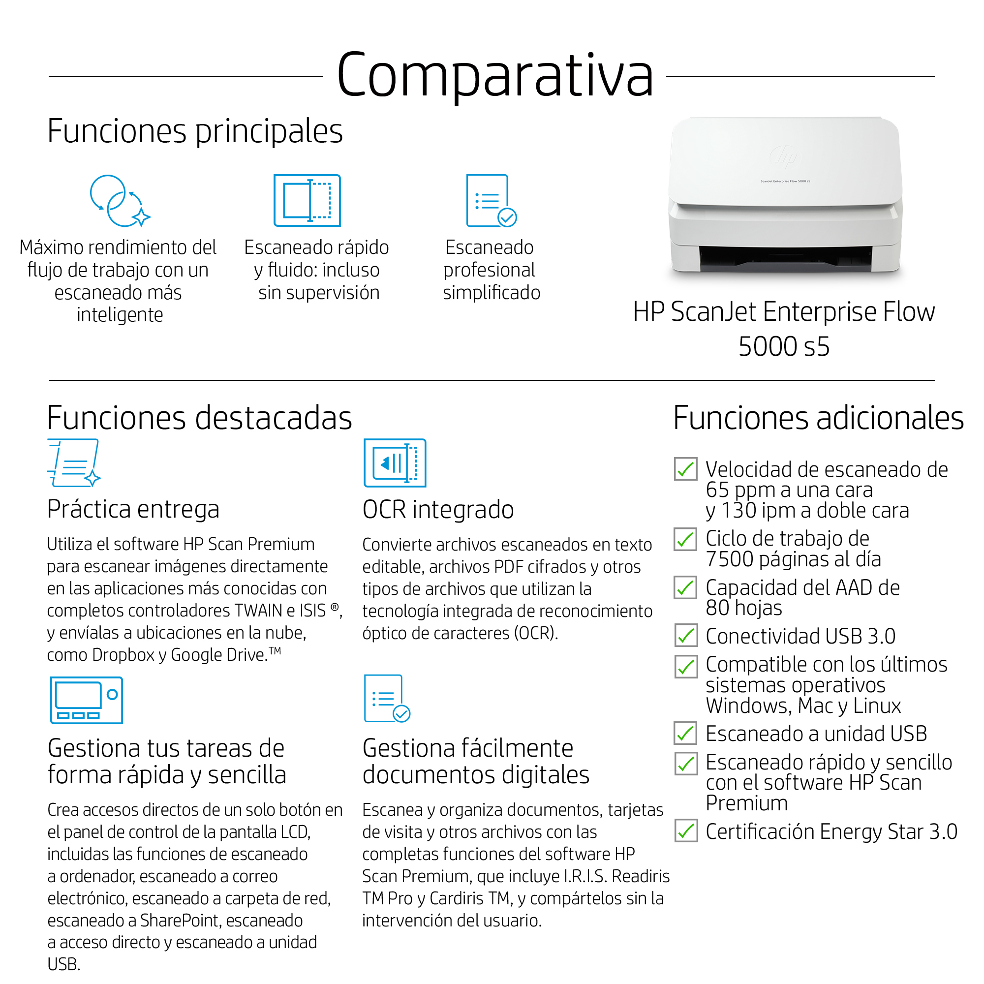 Escáner HP 5000 s5 6FW09A – 7500 páginas –