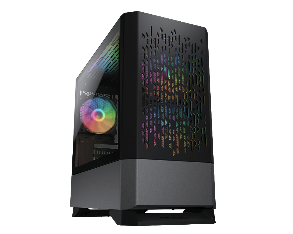 COUGAR MG140 Air RGB. Factor de forma: Mini Tower, Tipo: PC, Color del producto: Negro. Ventiladores frontales instalados: 2x 120 mm, Diámetro de ventiladores frontales soportados: 120,140 mm, Ventiladores laterales instalados: 2x 120 mm. Tamaños de disco duro soportados: 2.5,3.5″. Ancho: 205 mm, Profundidad: 420 mm, Altura: 410 mm. Ancho del paquete: 268 mm, Largo del paquete: 486 mm, Alto del paquete: 472 mm