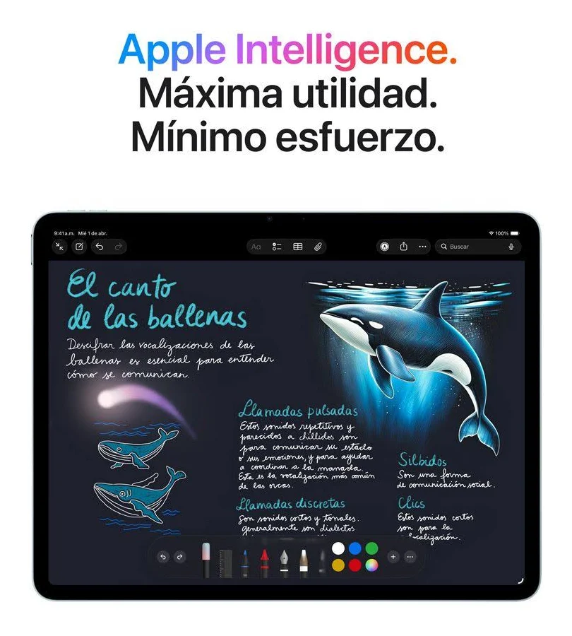 Diseñado para Apple Intelligence y ahora con los superpoderes del chip M4 de Apple. Es tan poderoso como accesible. Viene con una espectacular pantalla Liquid Retina, cámara frontal Center Stage de 12 MP para videollamadas increíbles, iPadOS y conexiones Wi-Fi 72 y 5G ultrarrápidas. Como funciona co