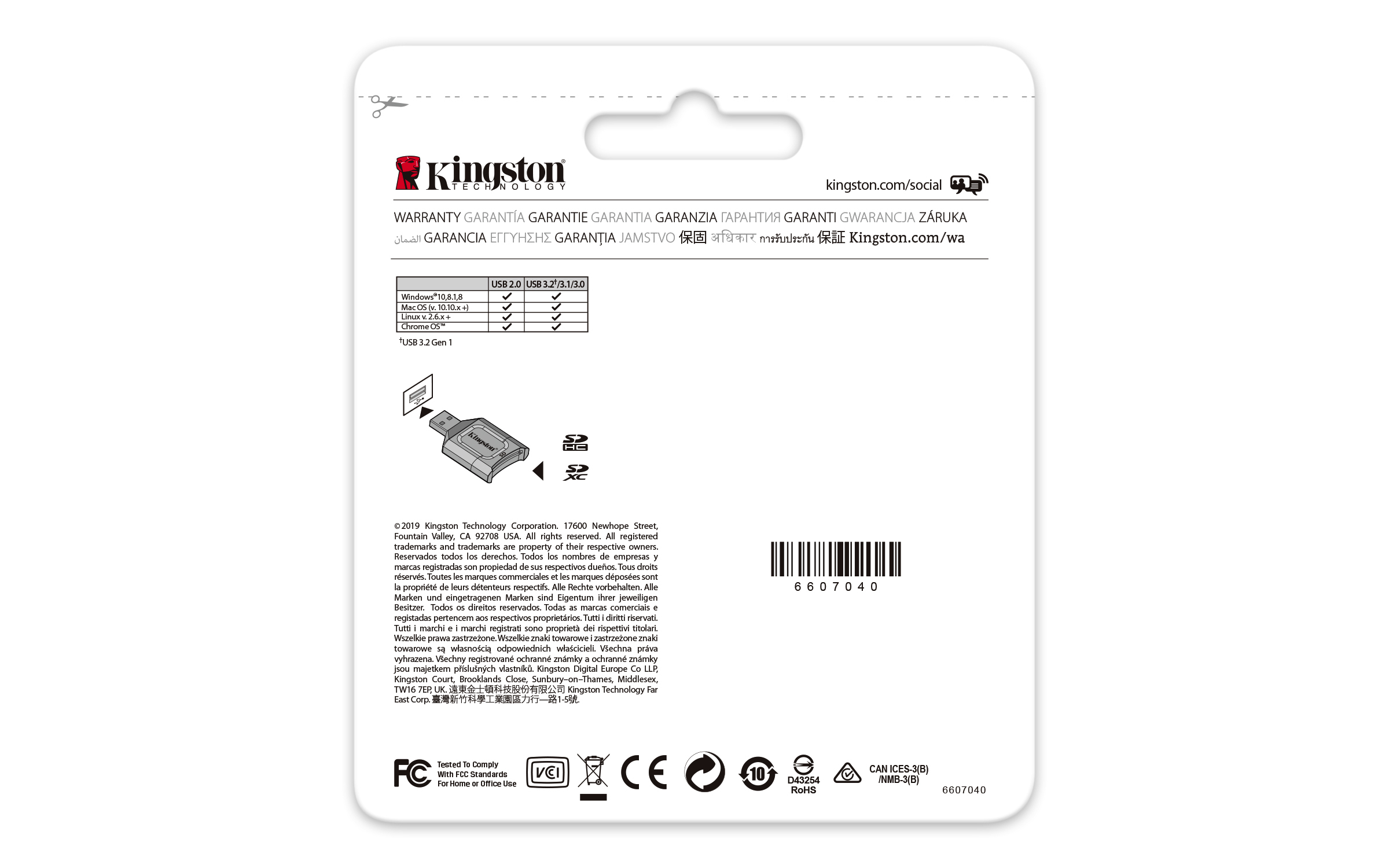 LECTOR DE MEMORIA SD KINGSTON MLP USB 3.2, NEGRO