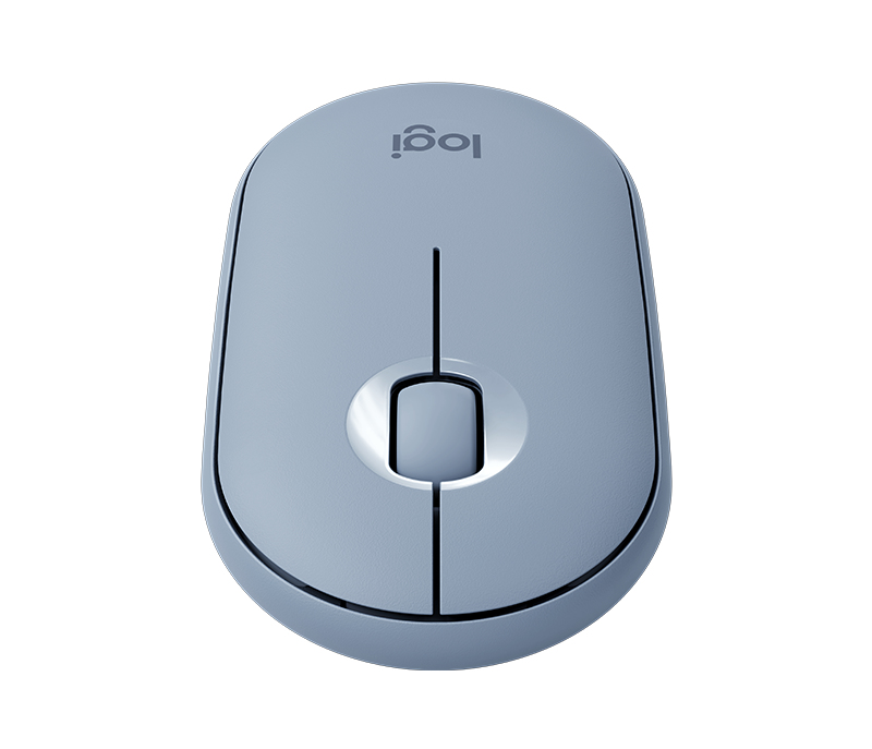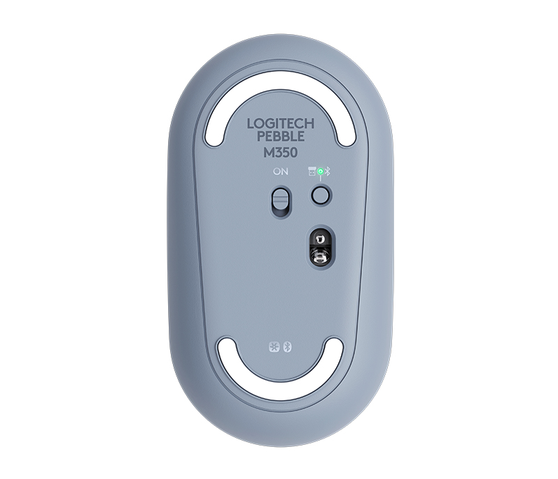 Logitech Pebble M350. Factor de forma: Ambidiestro. Tecnología de detección de movimientos: Óptico, Interfaz del dispositivo: RF inalámbrico + bluetooth, Resolución de movimiento: 1000 DPI, Tipo de botones: Botones presionados, Cantidad de botones: 3, Tipo de desplazamiento: Rueda. Fuente de energía: Baterías. Color del producto: Azul, Gris