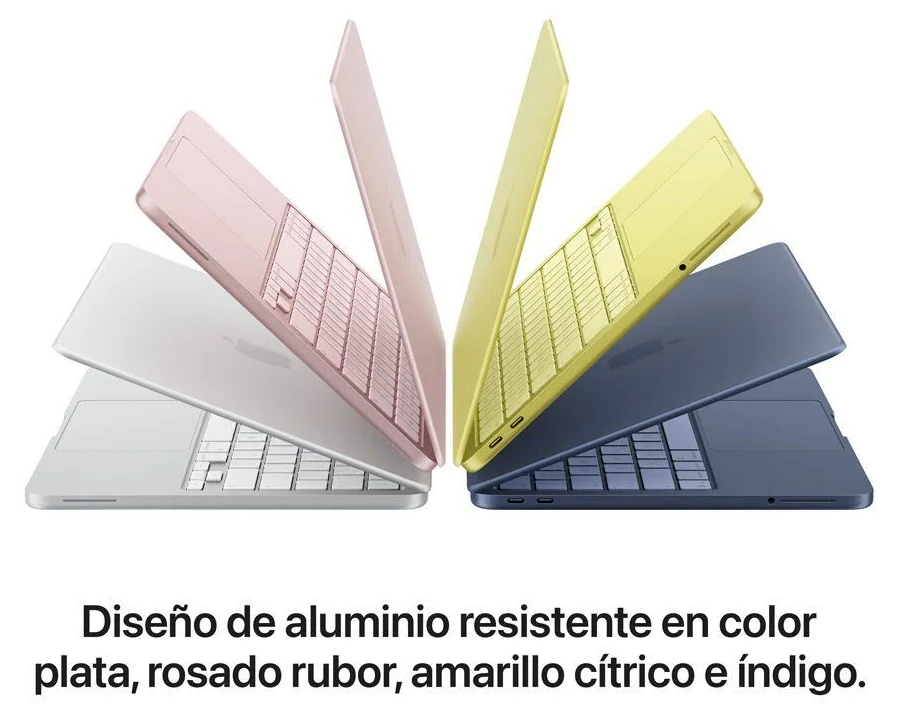 Presentamos la MacBook Neo, una Mac increíble a un precio sorprendente. Con un diseño resistente, colores irresistibles y poderosas funcionalidades, tiene toda la magia de la Mac que enamora día a día. Músculo para lo que te mueve. Con el chip A18 Pro puedes usar tus apps favoritas, volar por las tareas diarias, darle rienda suelta a tu creatividad y arrasar en los juegos. Prepárate para hacer todo a la velocidad de tu inspiración. Vuela por las tareas diarias. El chip A18 Pro tiene la potencia y la eficiencia que necesitas para usar tus apps favoritas y sacarle partido a la IA. Una compañera incansable. Desde la primera clase de la mañana hasta el último capítulo antes de dormirte, la MacBook Neo te hace segunda. Tus sentidos, bien consentidos. Las fotos y los videos tienen un nivel de detalle y contraste alucinante. Los textos se ven nítidos y son fáciles de leer. Y las dos bocinas laterales te envuelven en el sonido. Es un regalo para la vista y música para tus oídos. La cámara FaceTime HD de 1080p destaca por su nitidez y siempre muestra tu mejor versión en las videollamadas. El sistema de dos micrófonos con tecnología beamforming aísla y amplifica tu voz y reduce el ruido de fondo para que siempre se te escuche fuerte y claro. Las dos bocinas laterales ofrecen un sonido inmersivo. Y el Audio Espacial compatible con Dolby Atmos crea una experiencia de sonido tridimensional para que disfrutes al máximo todas las canciones, series y películas.