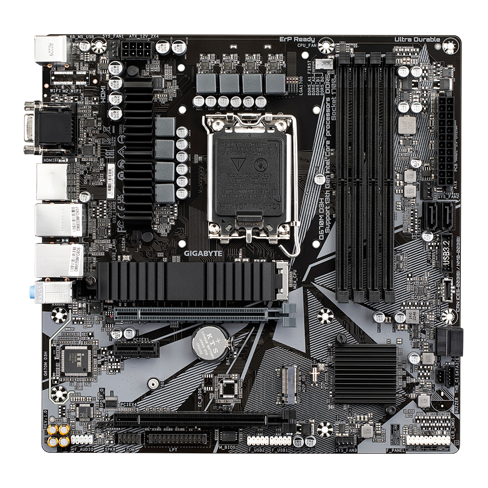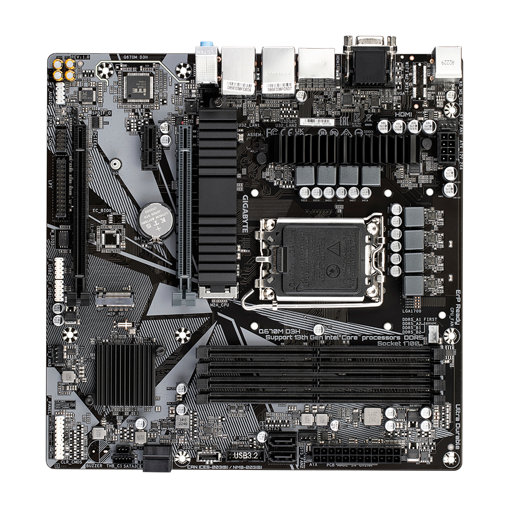 GIGABYTE Q670M D3H, Intel, LGA 1700, Intel® Celeron®, Intel® Core™ i3, Intel® Core™ i5, Intel® Core™ i7, Intel® Core™ i9, Intel Pentium G, LGA 1700, 128 GB, DDR5-SDRAM