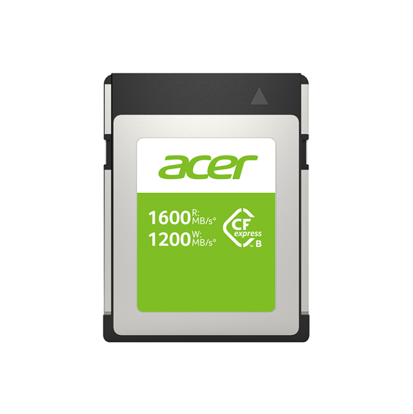 Acer CFE100. Capacidad: 256 GB, Tipo de tarjeta flash: CFexpress, Tipo de memoria interna: NAND, Velocidad de lectura: 1600 MB/s, Velocidad de escritura: 1200 MB/s. Color del producto: Plata, Negro