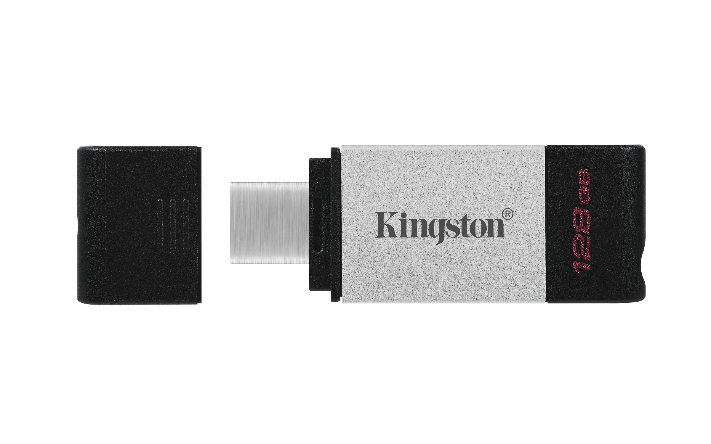 Kingston Technology DataTraveler 80, 128 GB, USB Tipo C, 3.2 Gen 1 (3.1 Gen 1), 200 MB/s, Tapa, Negro, Plata
