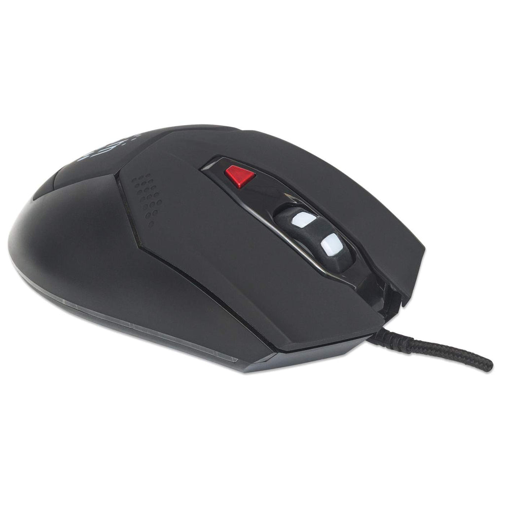 Mouse Optico Cableado para Videojuegos con LED MANHATTAN 176071 – Alámbrico, Juego, Óptico, 2400 (Ajustable), Negro/Multicolor