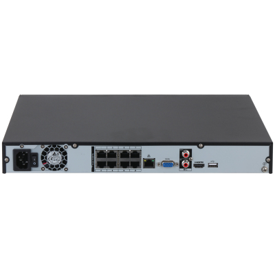 Dahua Technology DHI-NVR4208-8P-4KS3. Canales de entrada de vídeo: 8 canales, Máxima resolución: 3840 x 2160 Pixeles, Resoluciones soportadas: 3840 × 2160, 1920 × 1080, 1280 × 1024, 1280 × 720 VGA: 1920 × 1080, 1280 × 1024, 1280 × 720. Interfaz del HDD: SATA. Ethernet LAN, velocidad de transferencia de datos: 10,100,1000 Mbit/s. Certificación: CE-EMC: EN 55032:2015+A1:2020; EN IEC 61000-3-2:2019+A1:2021; EN 61000-3-3:2013+A1:2019+A2:2021;…. Consumo energético: 10 W, Voltaje de entrada AC: 100 – 240 V, Frecuencia de entrada AC: 50/60 Hz