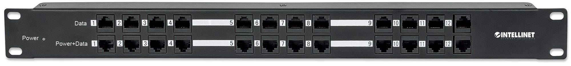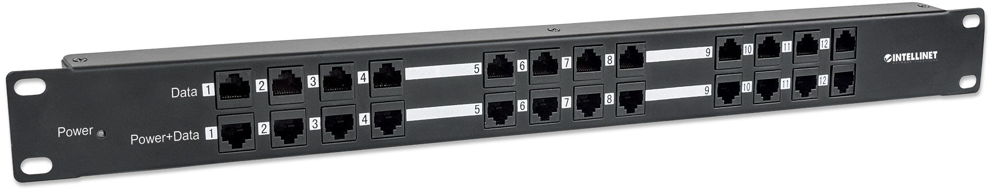 PATCH PANEL 12 PUERTOS PASSIVE POE INTELLINET 720342/CAT5E/1U/MONTAJE EN RACK DE 19"/COLOR NEGRO