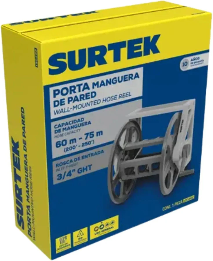 PORTA MANGUERA DE PARED SURTEK 130362 CAPACIDAD DE 75M/POLIPROPILENO