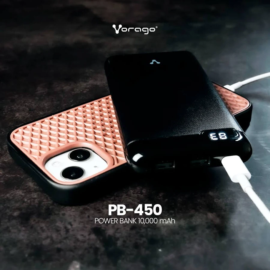La Vorago Power Bank 10.000mAh Negro PB-450-BK es un dispositivo de carga portátil diseñado para ofrecer una solución de energía universal. Con un ancho de 70 mm, una profundidad de 15.7 mm y una altura de 139 mm, su forma rectangular permite un manejo cómodo y práctico. El peso de 213 g facilita su