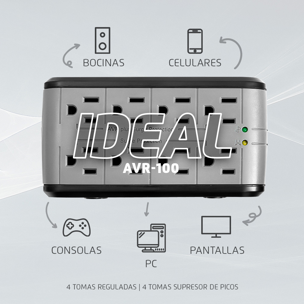 3. REGULADOR DE VOLTAJE VORAGO AVR-100, 1000VA/8 CONTACTOS