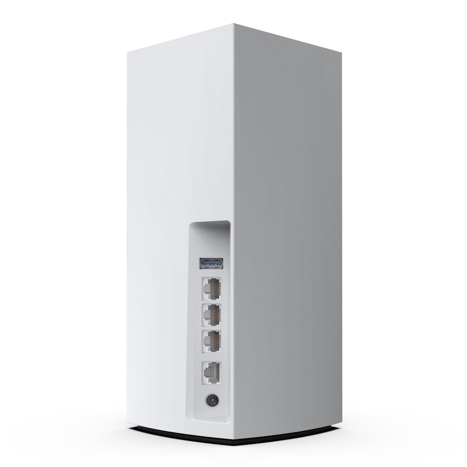 Linksys MX4200. Color del producto: Blanco, Tipo de antena: Interno, Tipo de producto: Enrutador de malla. Banda Wi-Fi: Tribanda (2,4 GHz/5 GHz/5 GHz), Máximo estándar Wi-Fi: Wi-Fi 6 (802.11ax), Tasa de transferencia de datos WLAN (máx.): 4200 Mbit/s. Frecuencia del procesador: 1.4 GHz, Memoria interna: 512 MB, Memoria Flash: 512 MB. Voltaje de entrada AC: 100 – 240 V, Corriente de entrada del adaptador de CA: 0.9 A, Frecuencia de entrada AC: 50/60 Hz. Ancho: 110 mm, Profundidad: 110 mm, Altura: 259 mm