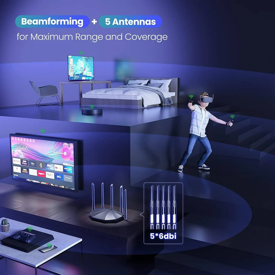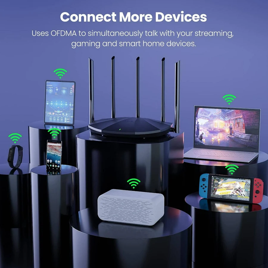 Router AX1500 de doble banda WIFI 6 para el hogar — Ideal para juegos, videos HD, descargas y más. Con velocidades de wifi de hasta 1.5 Gbps (1201 Mbps en la banda de 5 GHz y 300 Mbps en la banda de 2,4 GHz) Puertos gigabit — El Router AC8 WiFi Gigabit cuenta con 4 puertos Gigabit, ideal para cualqu