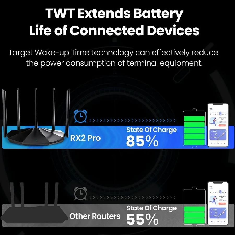ROUTER WIFI 6 AX1500 TENDA RX2PRO DOBLE BANDA/5 ANTENAS DE ALTA GANANCIA DE 6DBI/3 PUERTOS LAN GIGABIT/WPA3+OFDMA+MU-MIMO/COLOR NEGRO