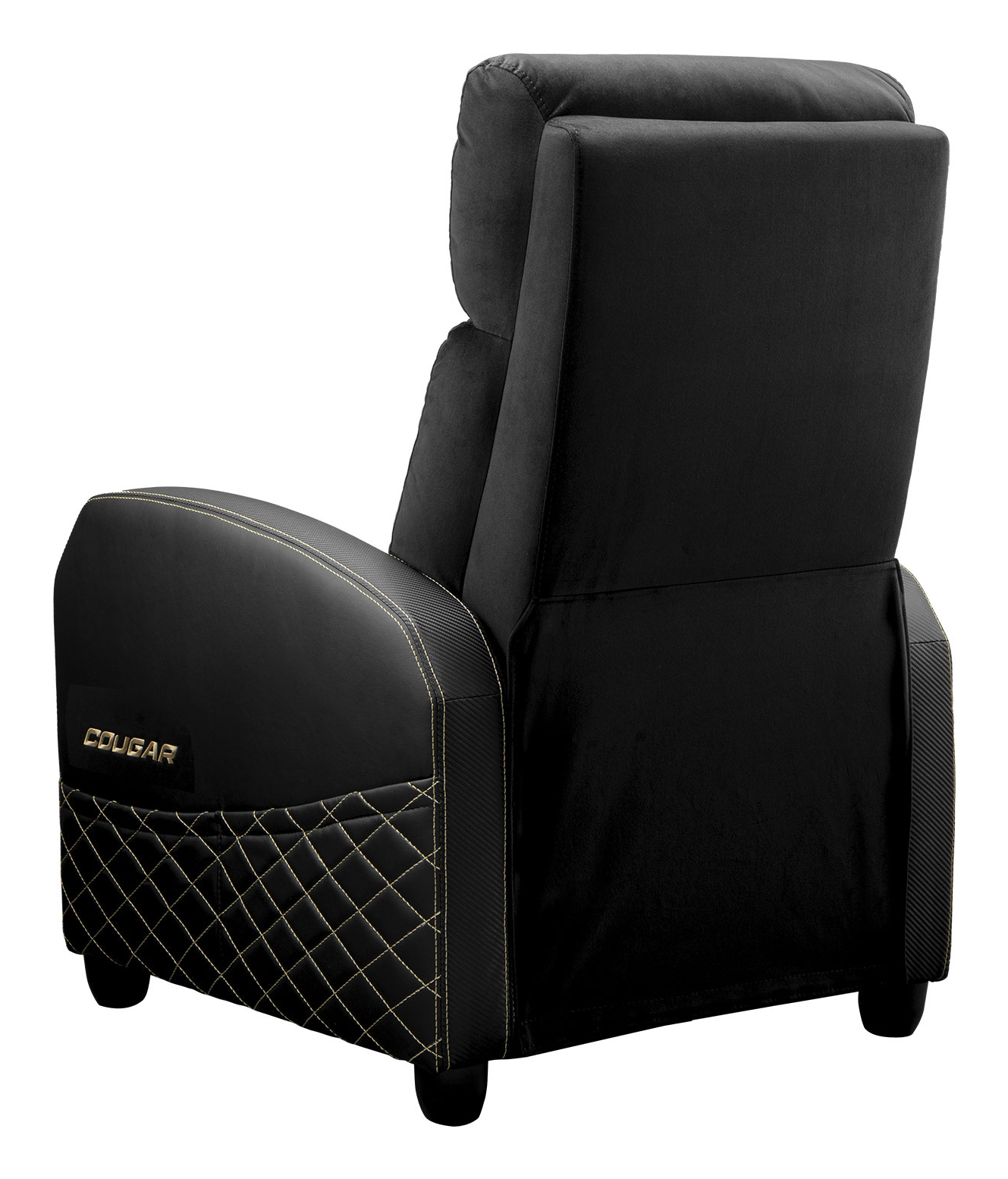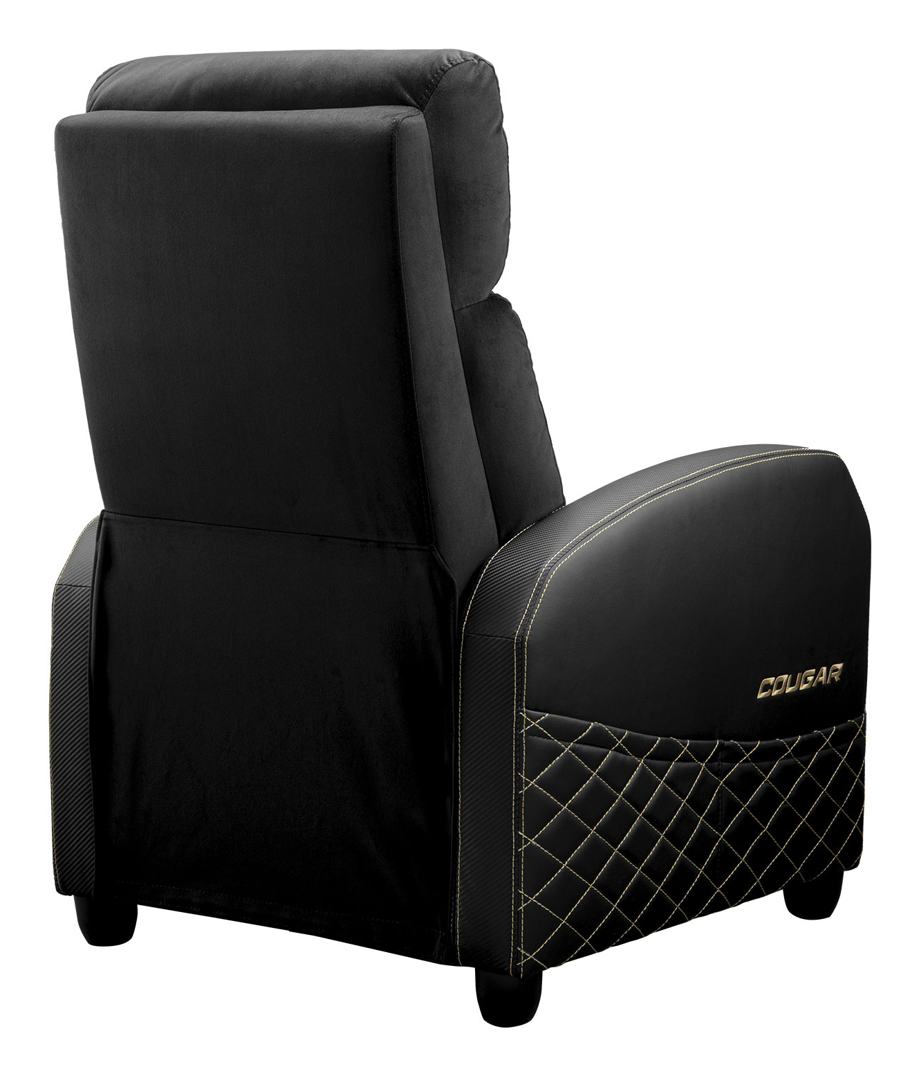 SOFA GAMER COUGAR RANGER ELITE GOLD/TERCIOPELO SUAVE/135KG/RECLINABLE/BOLSILLO LATERAL/COLOR NEGRO-DORADO/3MRAEGLB.0001