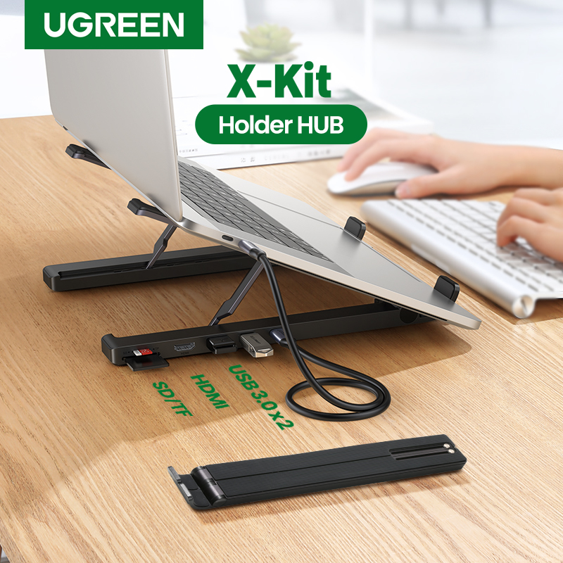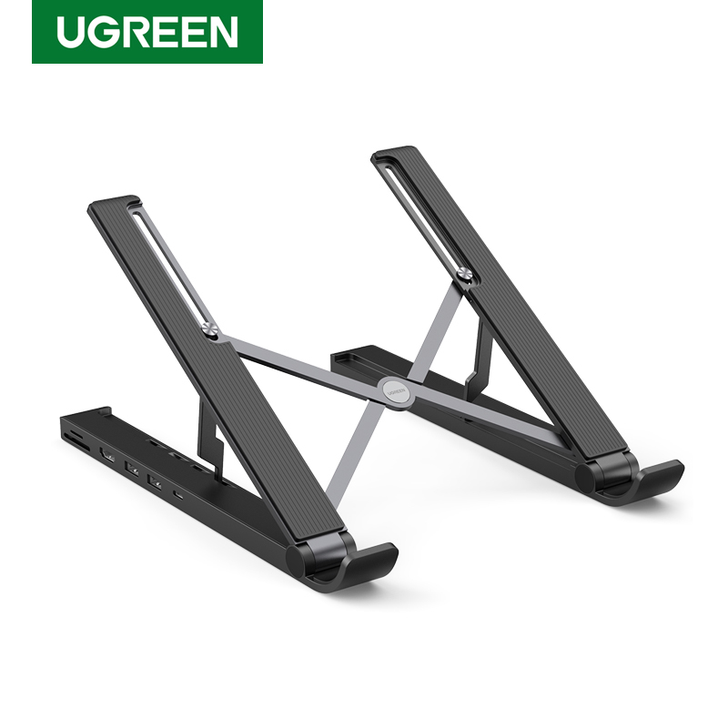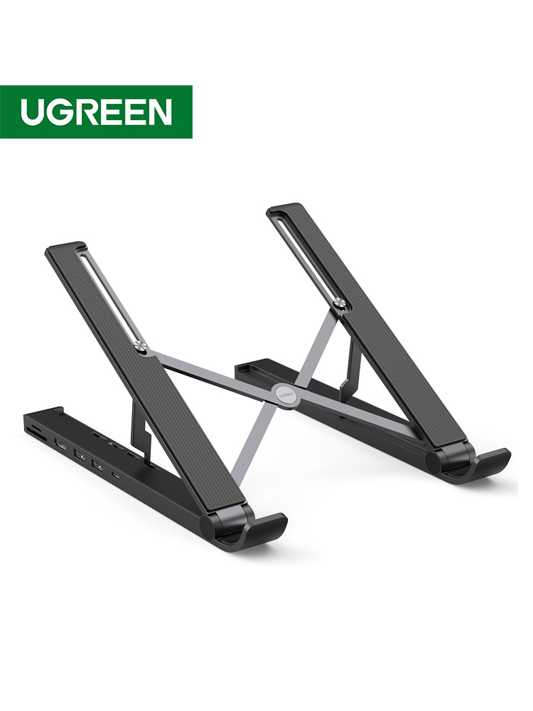 SOPORTE PARA LAPTOP DE 11-17.3" UGREEN, CON DOCKING STATION, 2 PUERTOS USB 3.0 A 5GBPS, AJUSTE DE ALTURA, ALUMINIO, COLOR NEGRO, PC+ABS, SILICONA, 80551