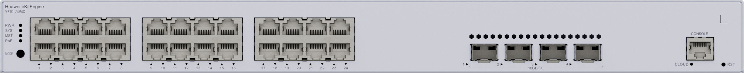 SWITCH DE DISTRIBUCION CORE GIGABIT ADMINISTRABLE HUAWEI S310-24P4X 24 PUERTOS 10/100/1000 MBPS (POE), 4 PUERTOS 10GE SFP+ UPLINK, POE PERPETUO, 400W