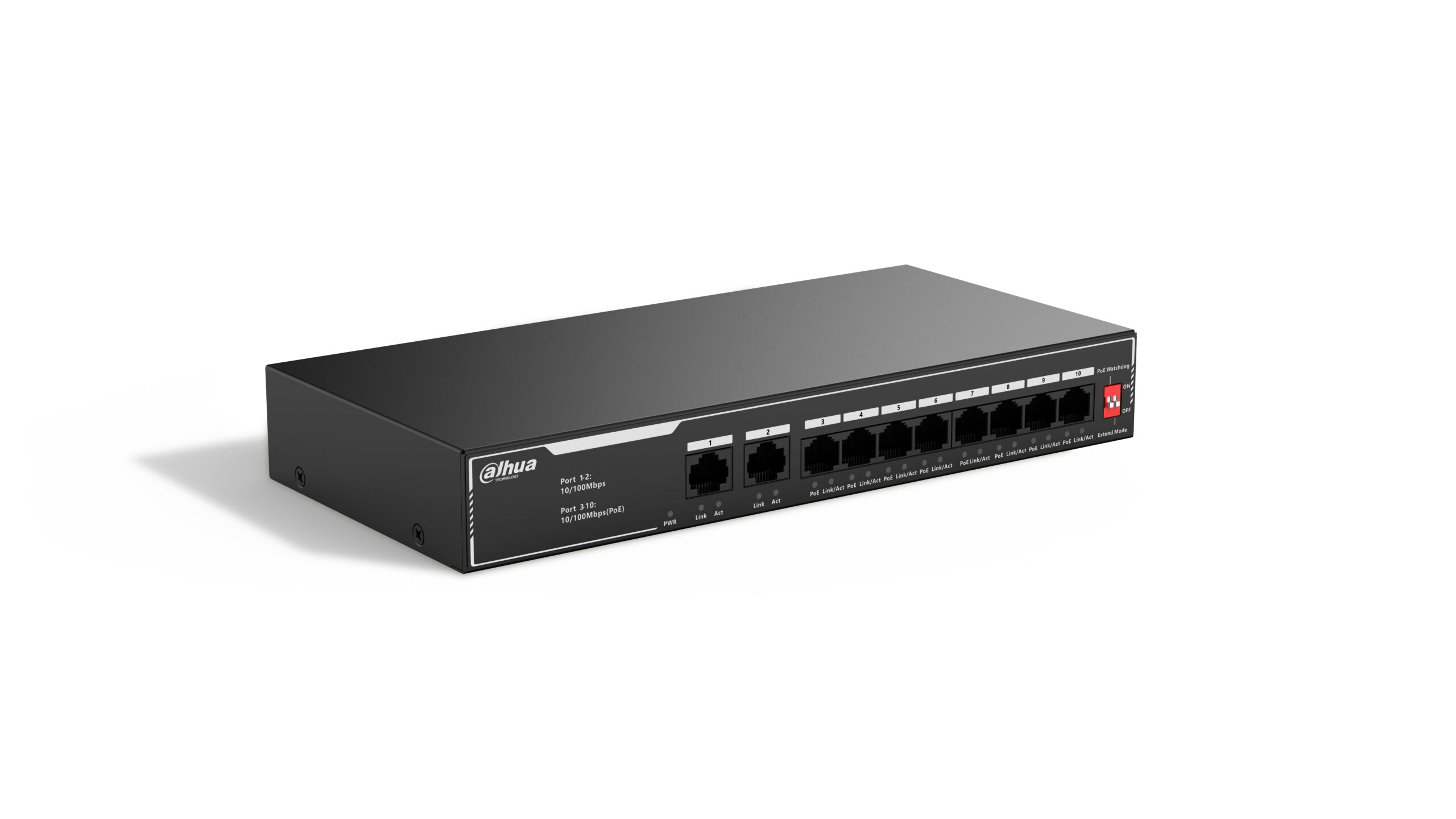 SWITCH POE DAHUA DH-SF1010LP 10 PUERTOS FAST ETHERNET/8 PUERTOS POE 10/100/2 PUERTOS UPLINK RJ-45/NO ADMINISTRABLE/PROTECCION CONTRA DESCARGAS