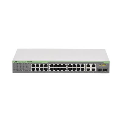 Switch ALLIED TELESIS WebSmart de 24 puertos 10/100 mbps + 2 puertos 10/100/1000 Mbps + 2 SFP Gigabit Combo. AT-FS750/28-10. –