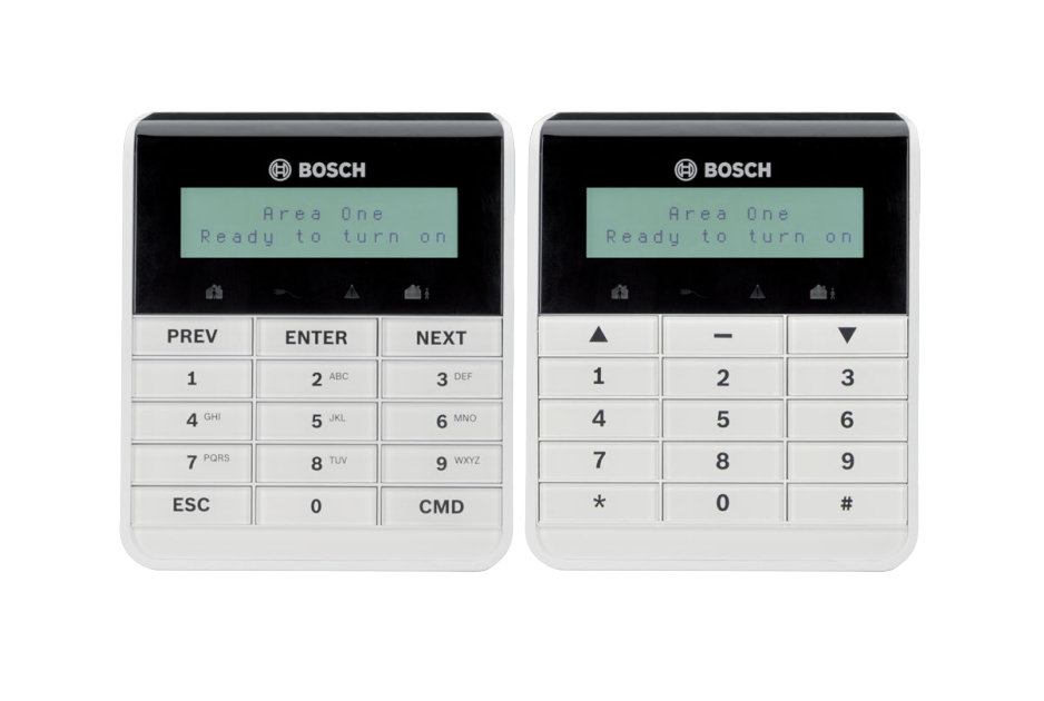 Bosch LCD text keypad. Tecnología de conectividad: Inalámbrico, Color del producto: Blanco. Voltaje de entrada: 12 V. Ancho: 139 mm, Profundidad: 118 mm, Altura: 23 mm