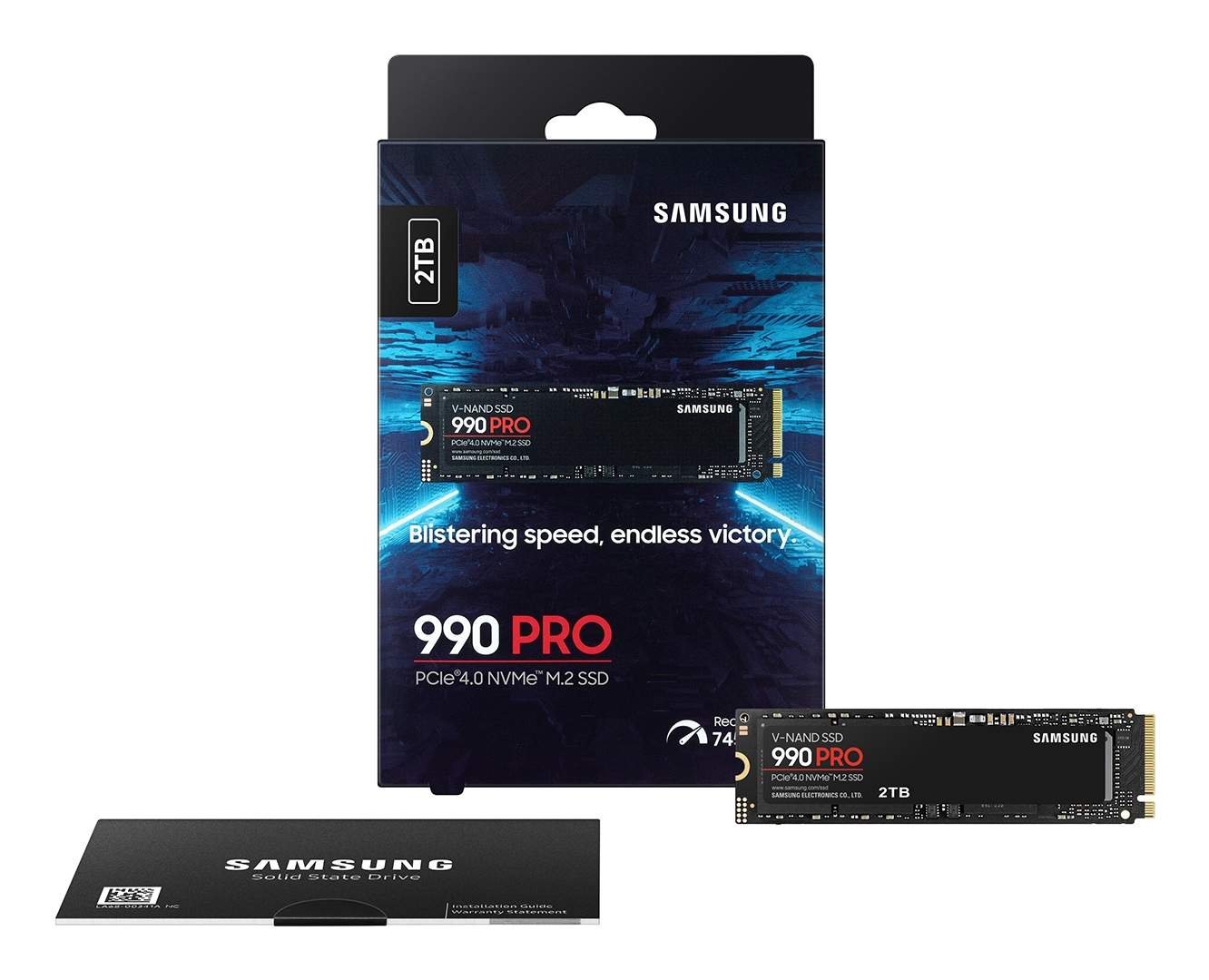Samsung 990 PRO. SDD, capacidad: 2 TB, Factor de formato SSD: M.2, Velocidad de lectura: 7450 MB/s, Velocidad de escritura: 6900 MB/s, Componente para: PC